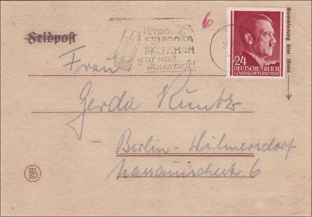 Gouvernement général (GG): WEBESTEMPEL Feldpost Lettre Varsovie 1944, colis