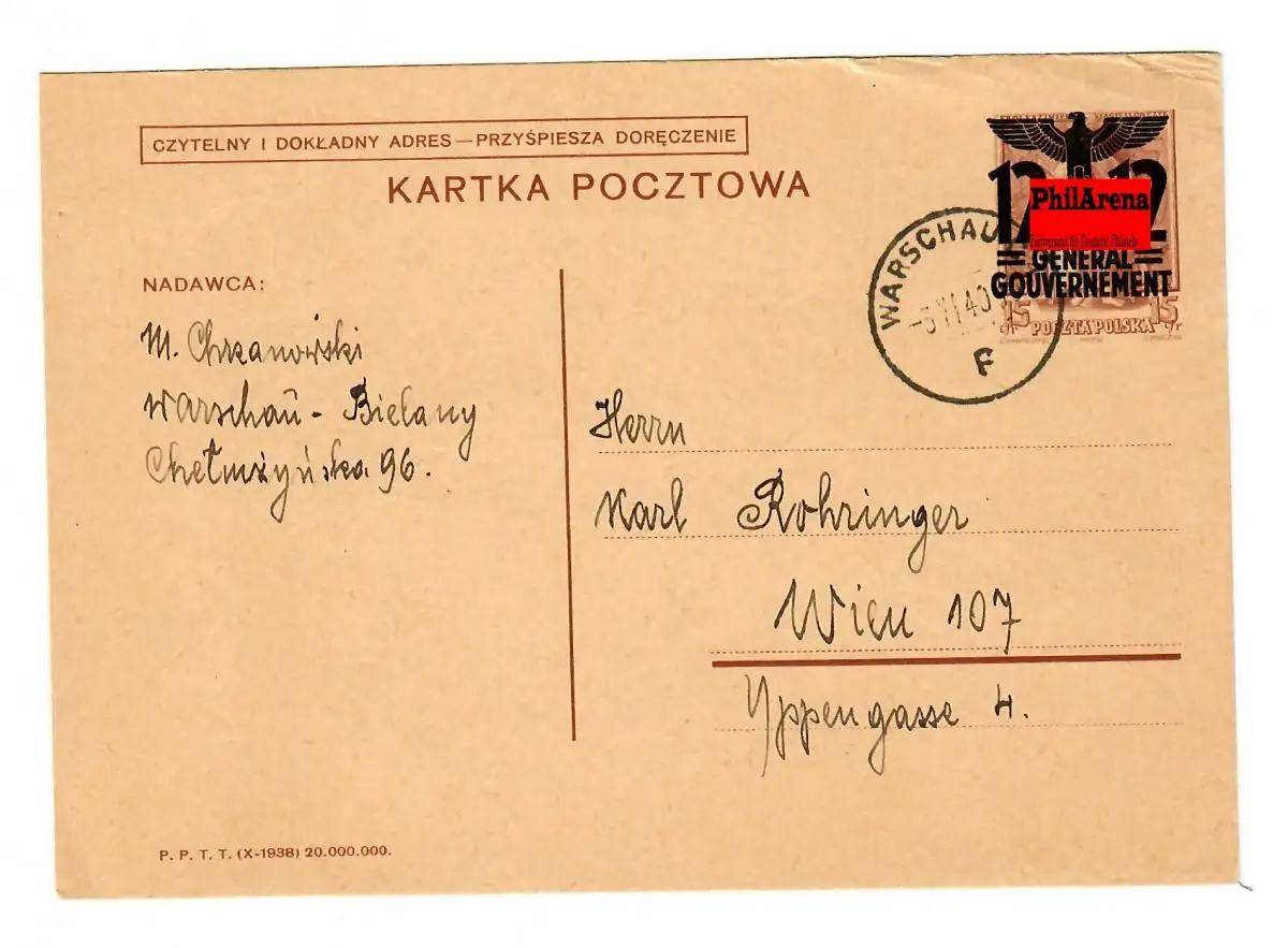 Gouvernement général GG: P4 Texte 01, Varsovie-Bielany à Vienne, 1940