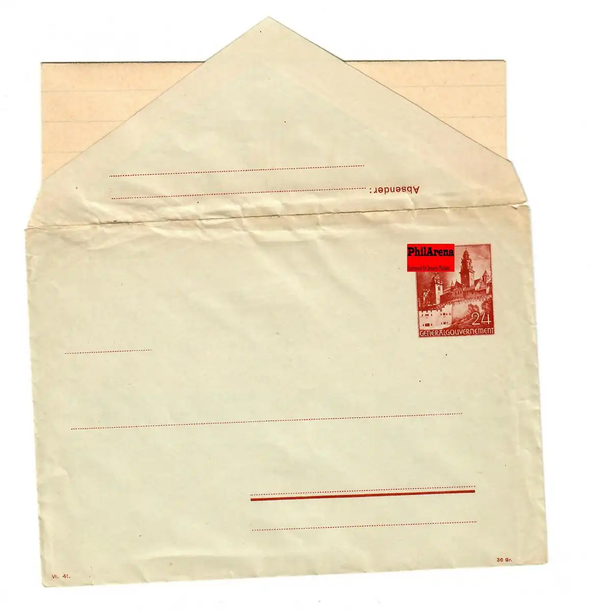 Gouvernement général Enveloppe de toutes les choses U2/01 avec carnet de lettres. Kuvert avec croustillant