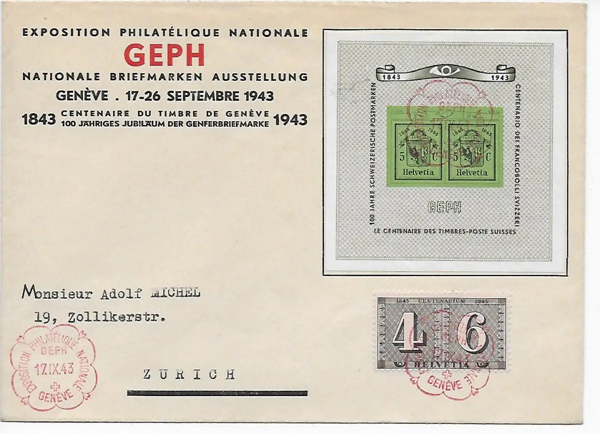 Genève: Timbres nationaux Exposition 1943 à Zurich, FDC