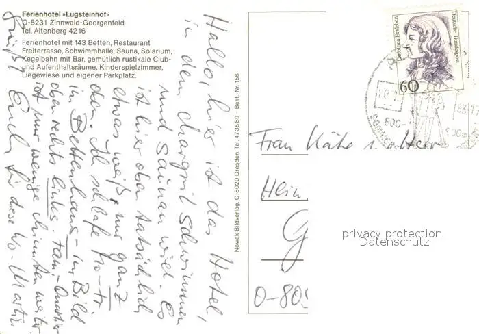Georgenfeld Ferienhotel Lugsteinhof Restaurant Hallenbad Georgenfeld postalisch gelaufen 1993 Erhaltung siehe scans [FriedD77] Frierer