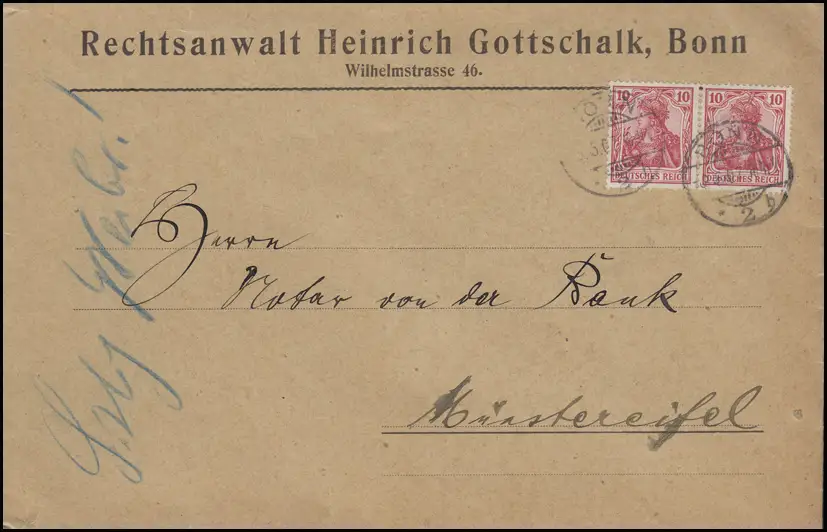 Germania 2x 10 Pf. Bf Avocat Gottschalk BONN 8.6.07 n. Münsterifell 8.06.07