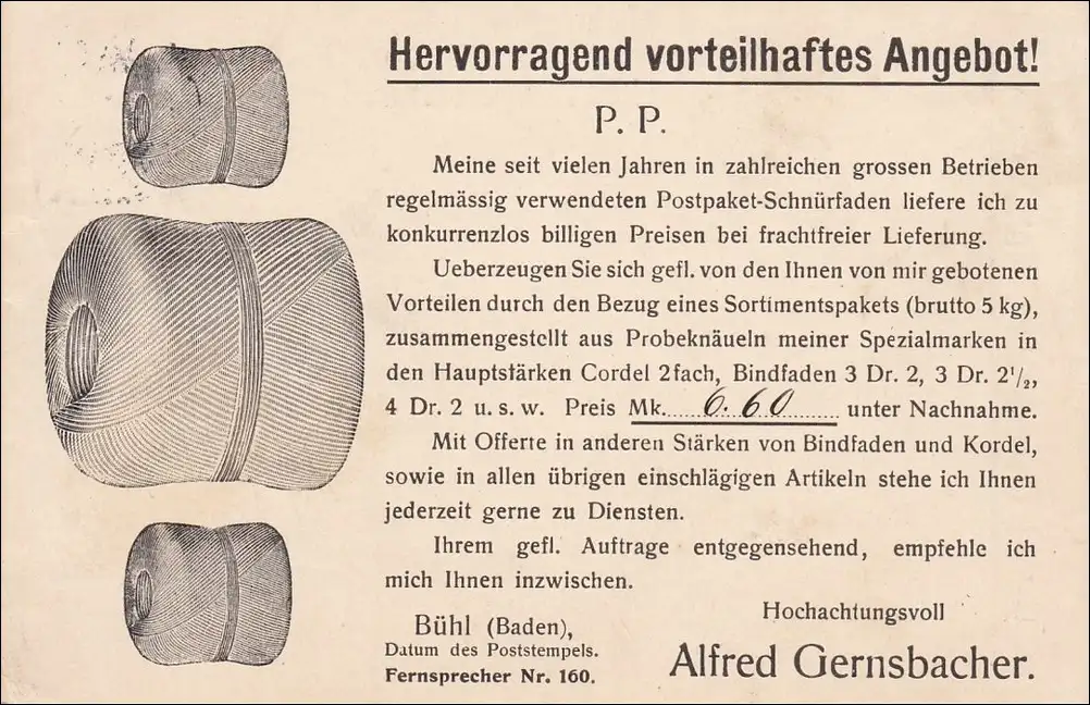 Germania: Des imprimés CarteBühl/Baden-Engen 1910: Offre Câbles de colis postaux