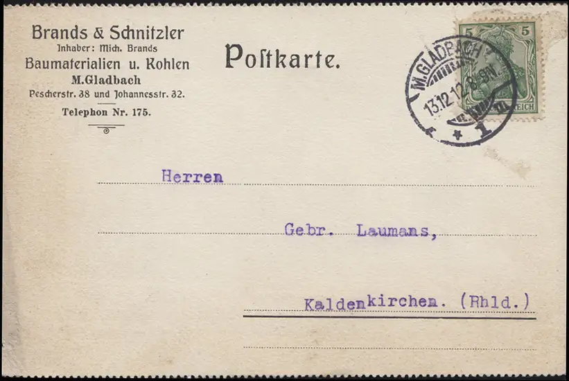 Société: Brands & Schnitzler / M.Gladbach à la Dachziegelfabrik Laumans. Examen: original Numéro d'article: 00000000033271