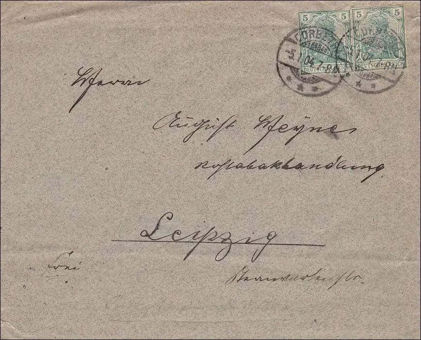 Germania: Lettre avec des marques coupées de Korbetha vers Leipzig 1904