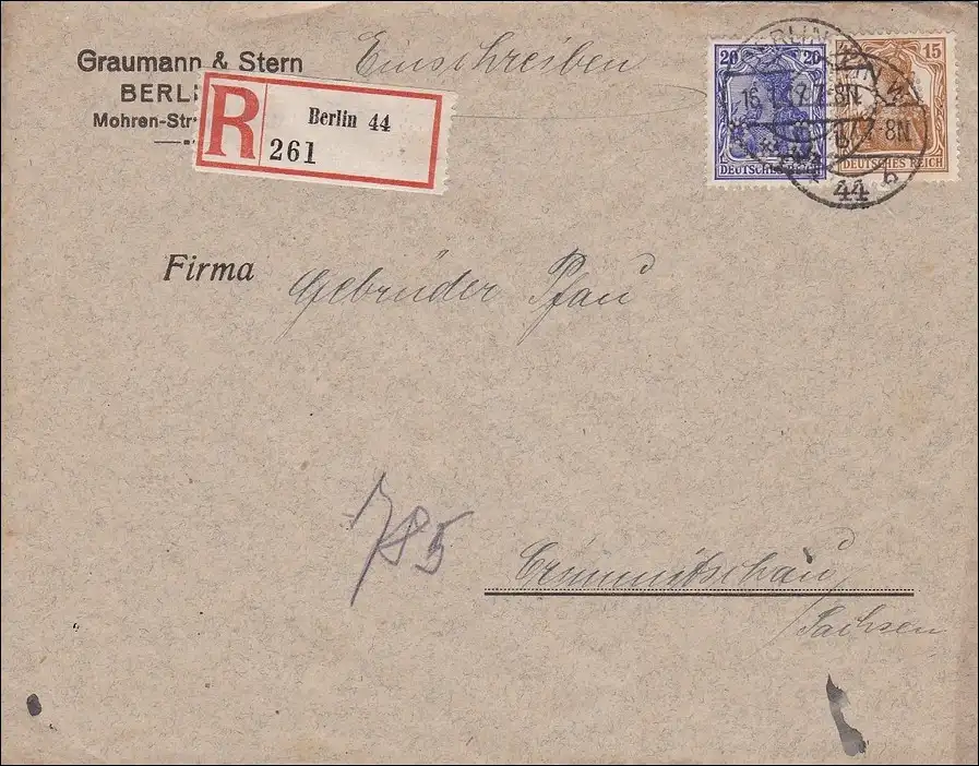 Germania: Lettre de Berlin à Grimmitschau / Sachsen 1917