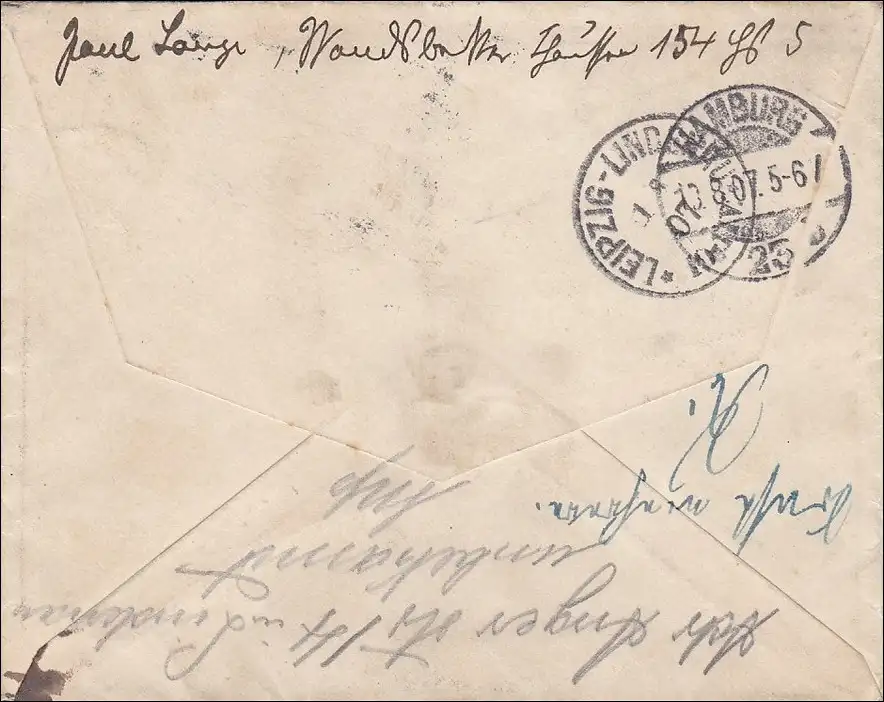Germania: Lettre de Hambourg à Leipzig et retour 1907