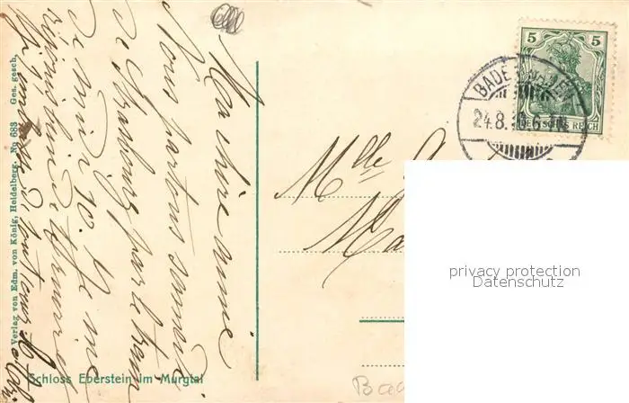 Gernsbach Schloss Eberstein Gernsbach postalisch gelaufen bis 1920 Erhaltung siehe scans [KathaD81] Kathoren