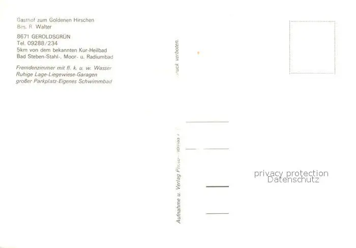 Geroldsgruen Gasthof zum Goldenen Hirschen Gaststube Schwimmbad Geroldsgruen postalisch nicht gelaufen nach 1965 Erhaltung siehe scans [WerneD78] WernPID7
