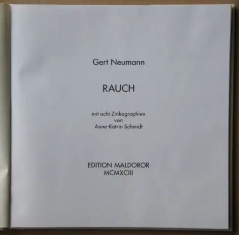 EDITION MALDOROR, Berlin, 1993. 4°. Impression de presse avec 8 indentographies originales d'Anne-Katrin Schmidt dans une édition de 50 ex.