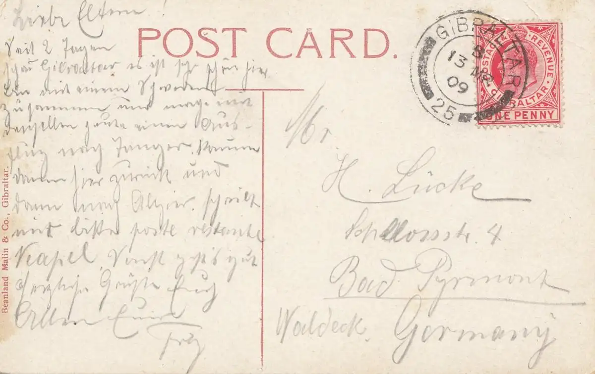 Gibraltar: 1909 Carte postale après Allemagne.
