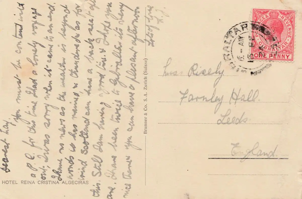 Gibraltar: 1924 Carte de vue vers l'Angleterre
