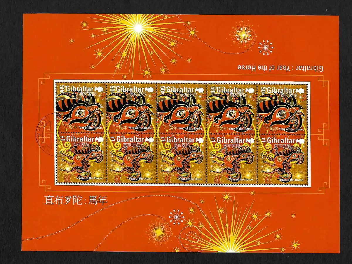 Gibraltar: 2014 Année du cheval, année du Horse, cacheté, arc en petit