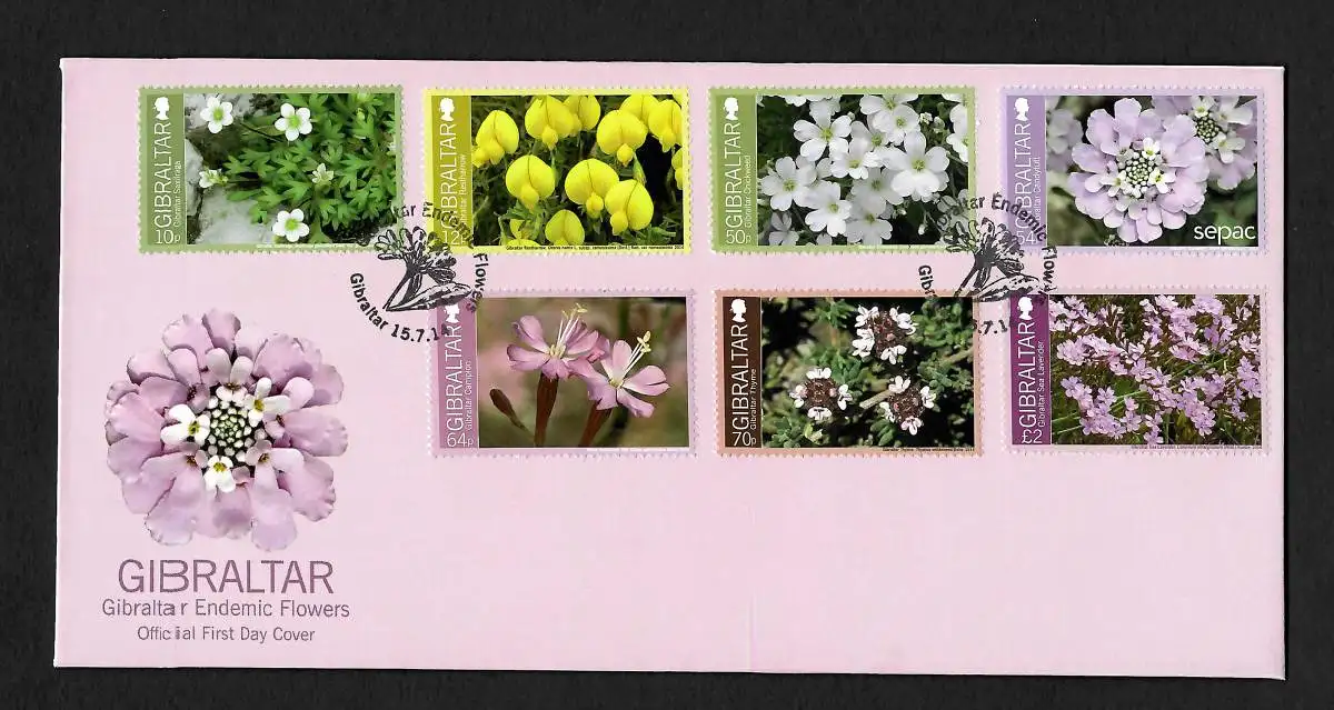 Gibraltar: Fleurs: 7x Timbres comme FDC