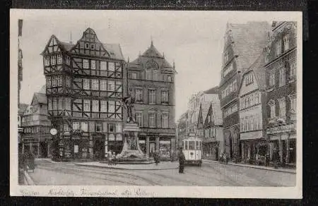 Giessen. Marktplatz, Kriegerdenkmal, altes Rathaus
