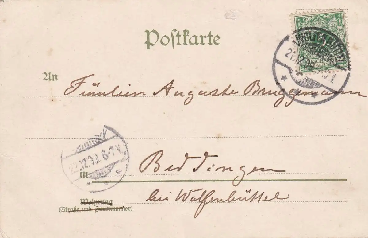 Félicitations carte postale 21.12.1899 Wolfenbüttel