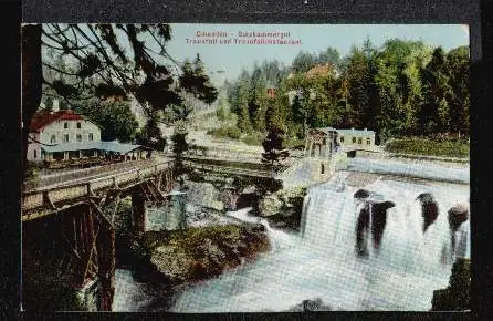 Gmunden. Traunfall und Traunfallrestaurant. - Rückseite mit Text.Stengel und Co. GmbH, Dresden 1905, 2586.(Österreich PLZ 4810)