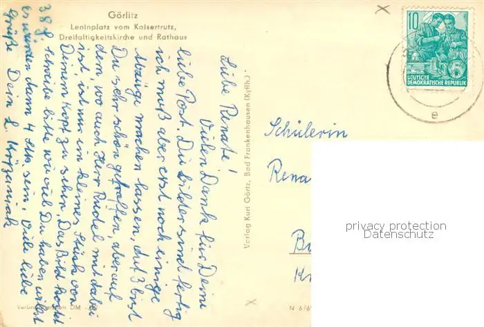 Goerlitz_Sachsen Leninplatz vom Kaisertrutz Dreifaltigkeitskirche und Rathaus Goerlitz Sachsen postalisch gelaufen nach 1965 Erhaltung siehe scans [WerneD78] WernPID7