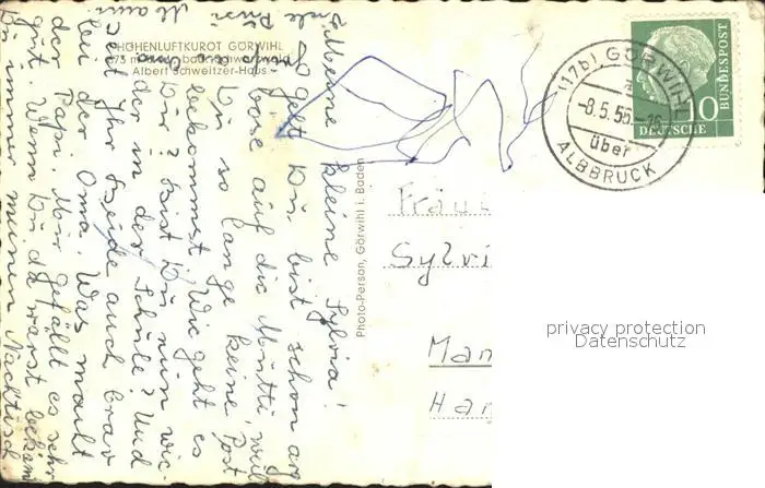 Goerwihl Albert Schweitzer Haus Hoehenluftkurort Goerwihl postalisch gelaufen 1955 Erhaltung siehe scans Alte Ansichtskarte Postkarte Frierer
