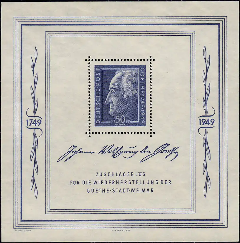 Bloc Goethe 6 - Semaines de fête à Weimar, frais de poste **