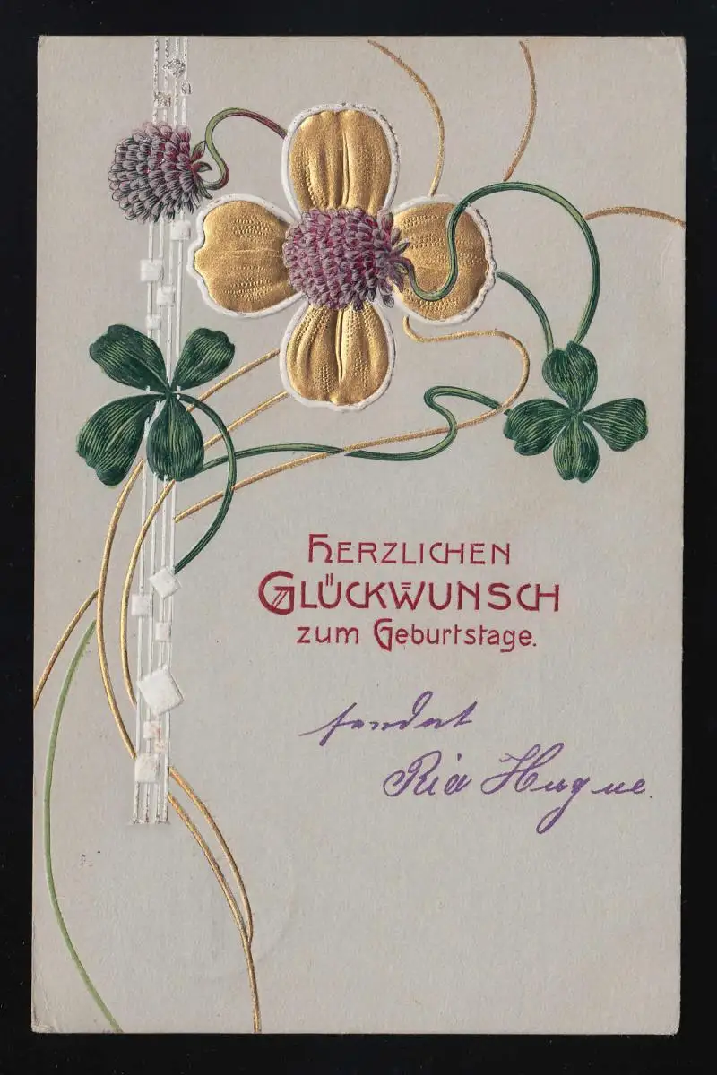 Gold Klee avec des fleurs Félicitations anniversaire, Francfort Seckbach 7.9.1907
