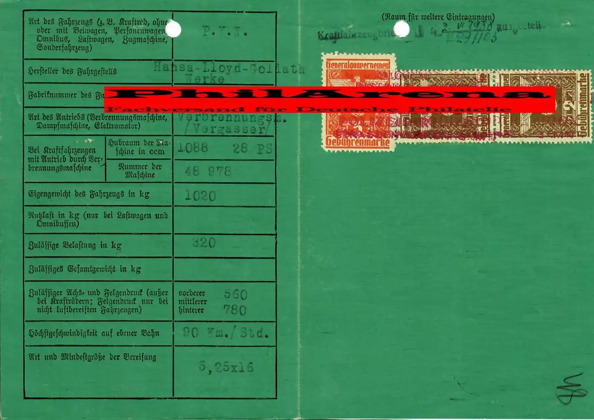 Gouvernement général GG: permis de conduire Hansa-Lloyd-Goliath Werke, 1943
