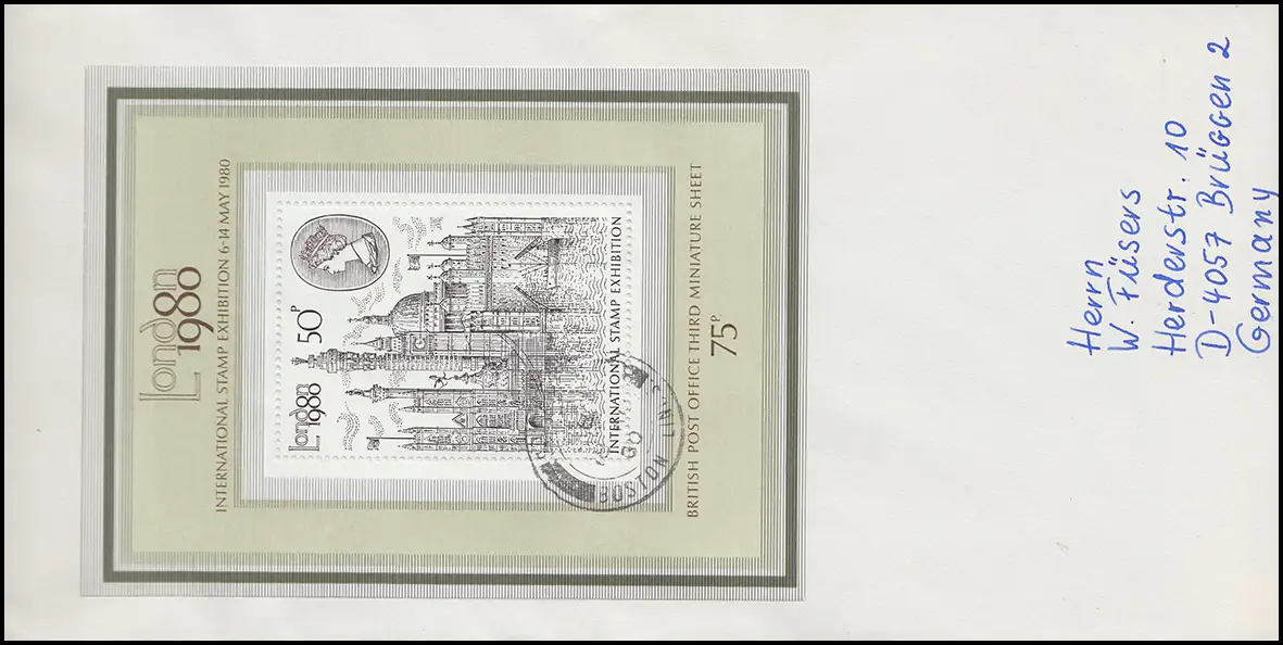 Grande-Bretagne Block 3 Exposition à LONDON, Lettre SUTTERTON 18.8.80