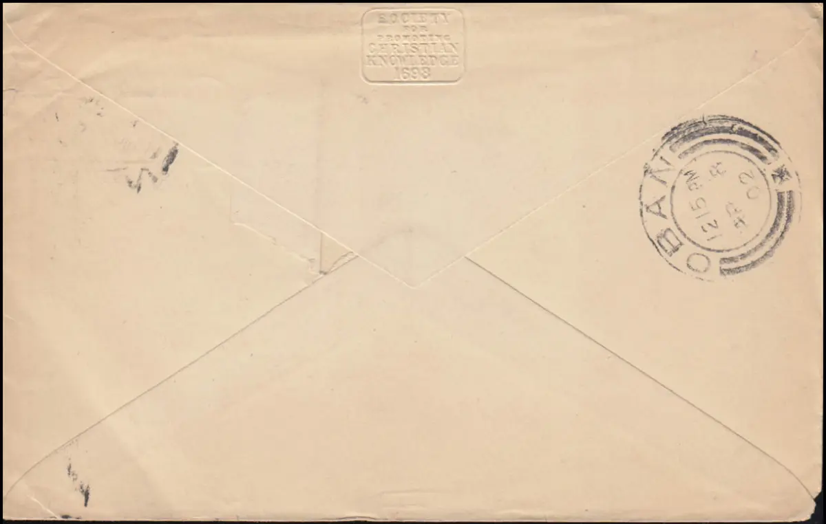 Tampon d'arrivée OBAN 8.4.1902, Temporaire de l'expéditeur: Société for promoting Christian Knowledge est l 'une des premières sociétés missionnaires européennes. Fondée en 1698 à Londres, cette organisation anglicane est active dans la production et la diffusion de la littérature chrétienne dans le monde entier. Examen: original Référence d .article: 00000000030414>p>Note: Cet article n'est disponible qu'en une seule fois. Vous recevrez exactement l & #39;article représenté.