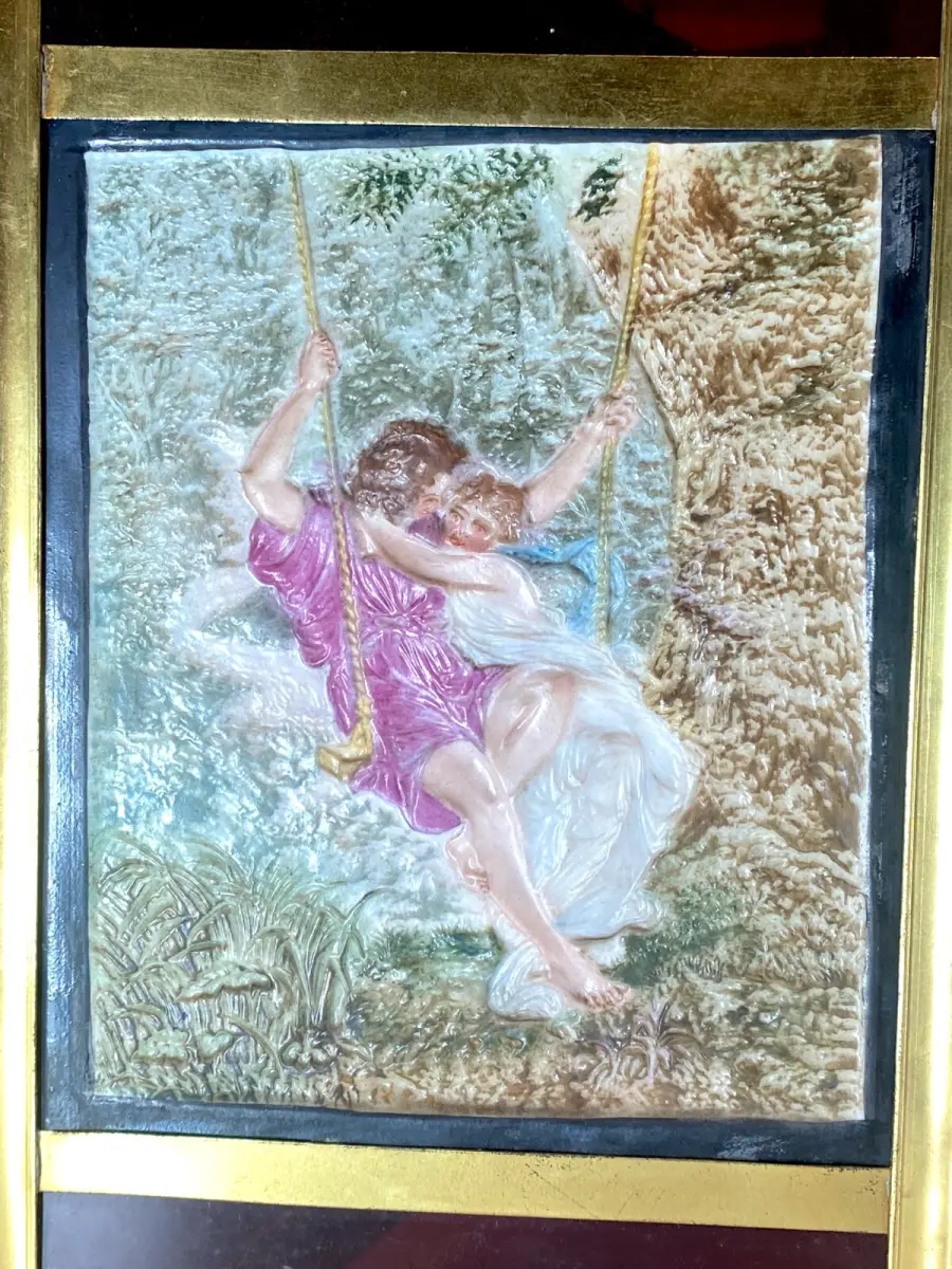 3 lithophanies de scènes galantes et bucoliques