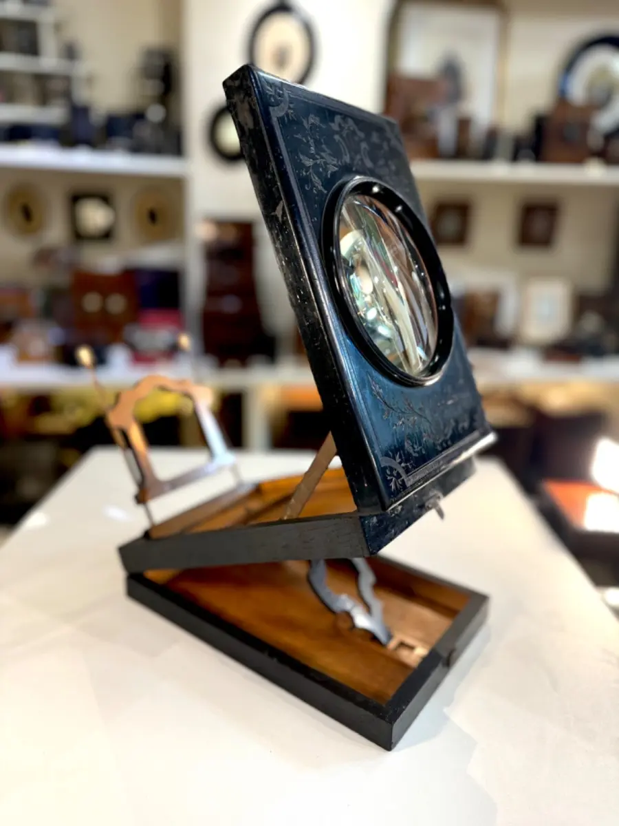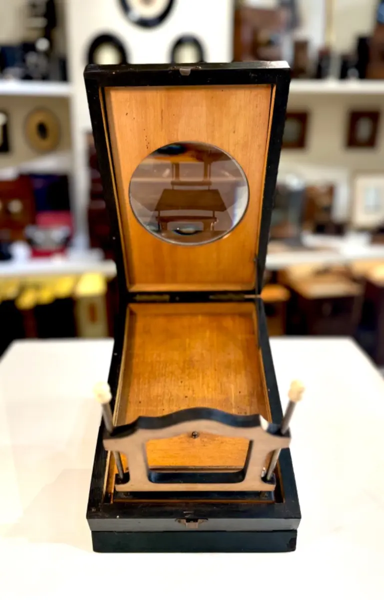 Les premiers Graphoscopes apparaissent au milieu du XIXème siècle. Ils servent à améliorer la visualisation des photographies sur papier. Ils sont dotés d’une lentille grossissante.
