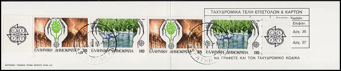 Grèce Carnets de marques 5 Europe 1986, cachet du premier jour ATHEN 23.4.86