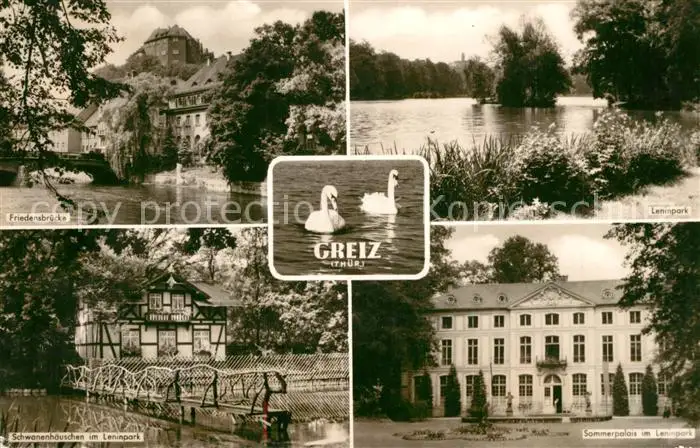 Greiz_Thueringen Friedensbruecke Leninpark Schwanenhaeuschen Sommerpalais Greiz Thueringen postalisch gelaufen 1921-1965 Erhaltung siehe scans [WerneD78] WernPID7
