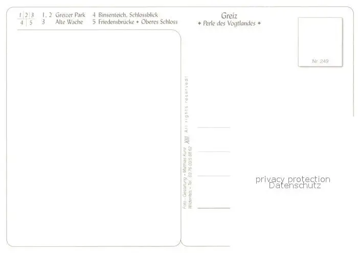 Greiz_Thueringen Greizer Park Alte Wache Binsenteich Schlossblick Friedensbruecke Greiz Thueringen postalisch nicht gelaufen nach 1965 Erhaltung siehe scans [KathaD81] Kathoren