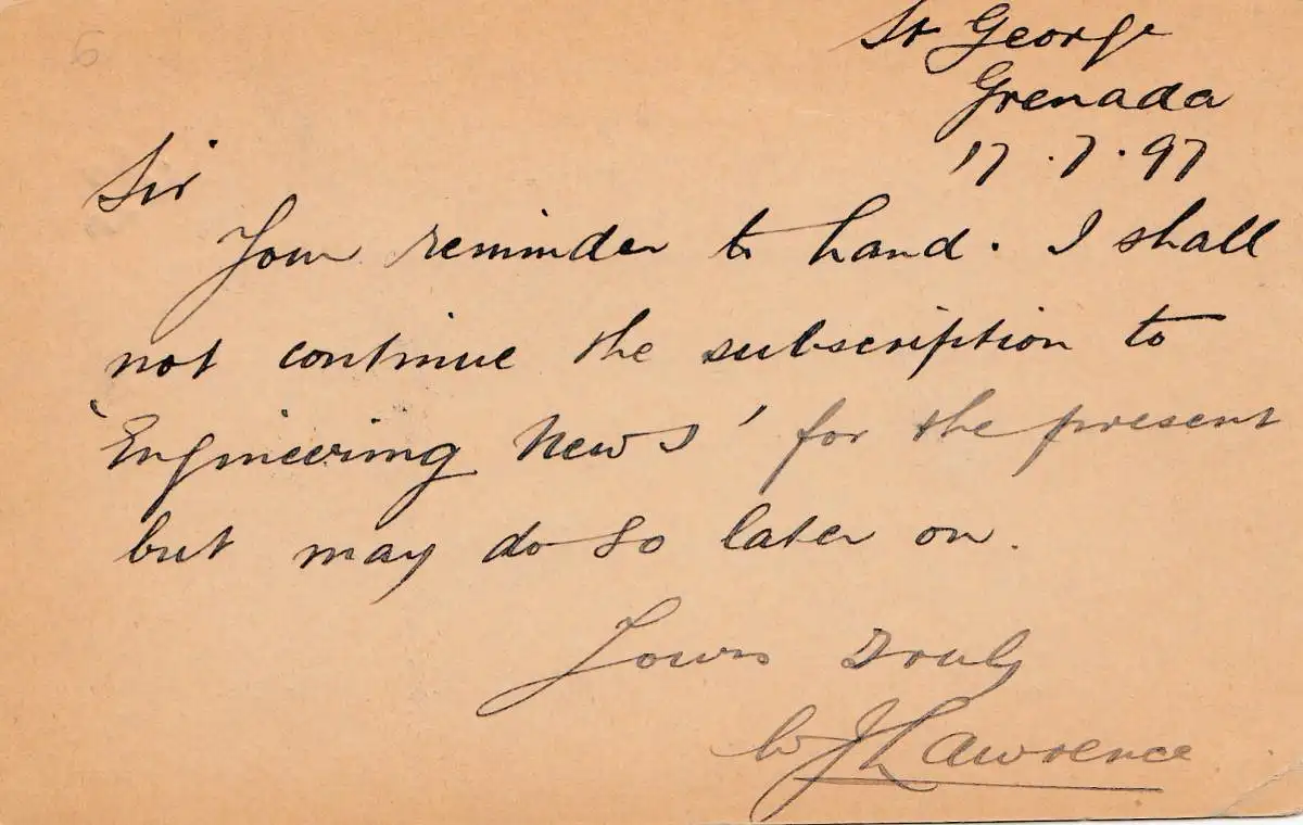 Grenade: Bony Post card 1897 to New York