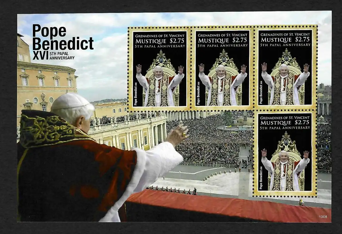 grenadines: le pape Bendedict XVI, 5ème anniversaire du pontificat, bloc **
