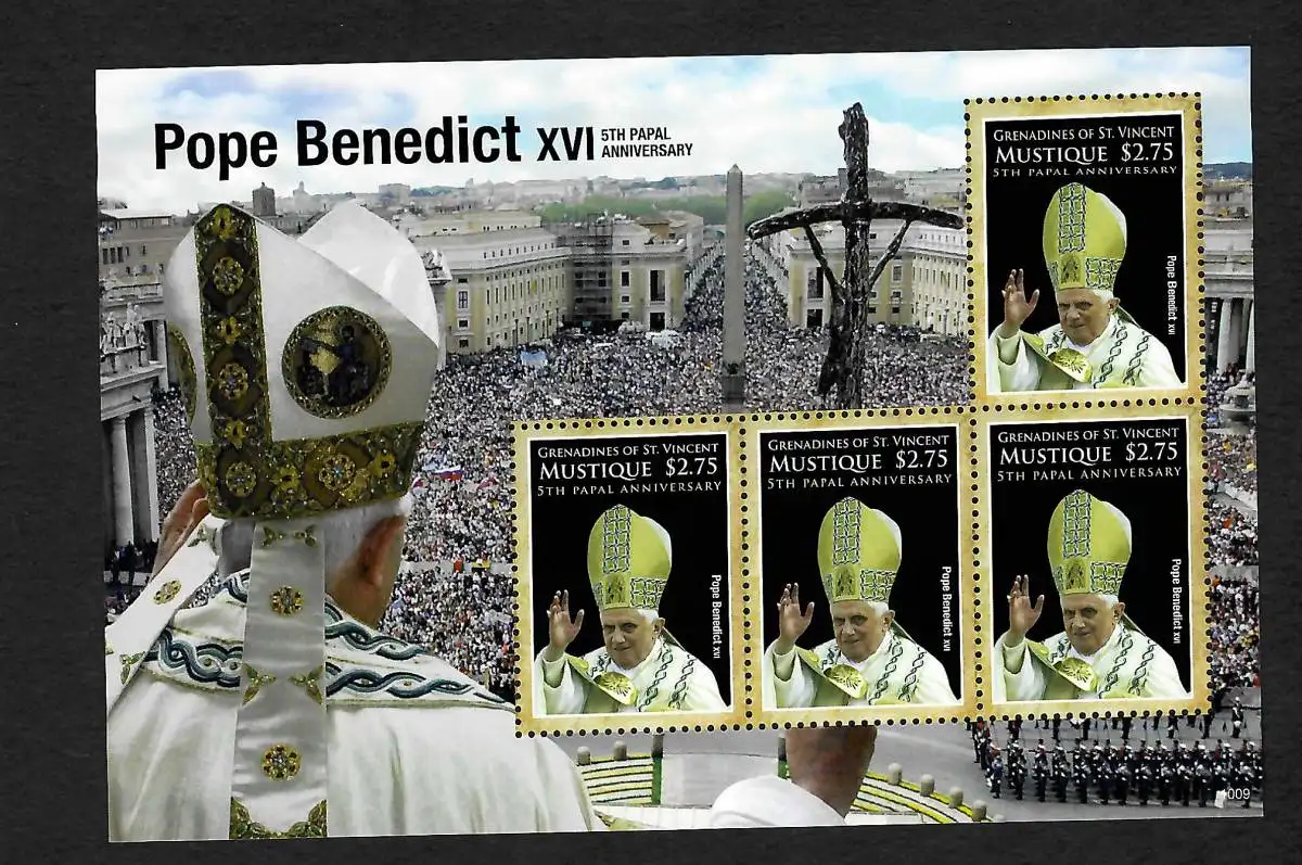 grenadines: le pape Bendedict XVI, 5ème anniversaire du pontificat, bloc post-frais