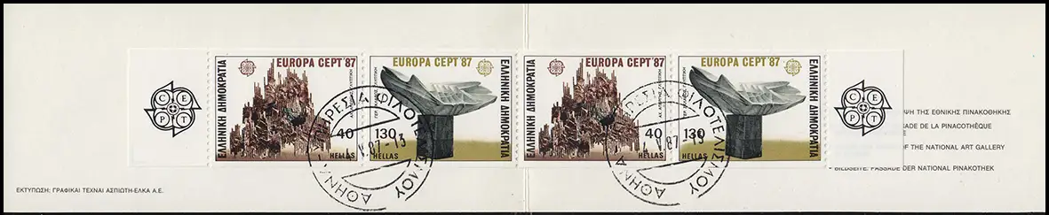 Grèce Carnets de marques 6 Europe 1987, cachet du premier jour ATHEN 4.5.87