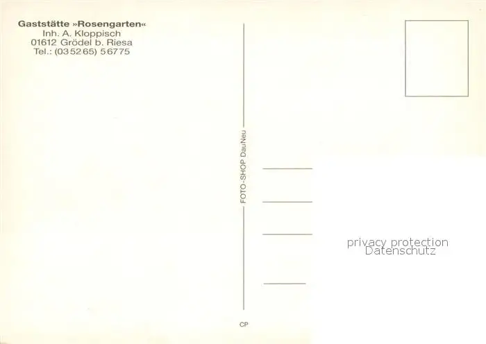 Groedel_Riesa Gaststaette Rosengarten Restaurant postalisch nicht gelaufen nach 1965 Erhaltung siehe scans [FriedD77] Frierer