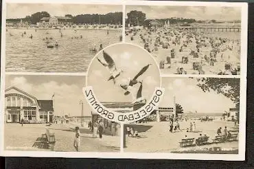 Grömitz. Ostseebad. Strand, Badeleben, Partie an der Landungsbrücke, Strandpromenade - Gelaufen 1916. (NPLZ 23743)