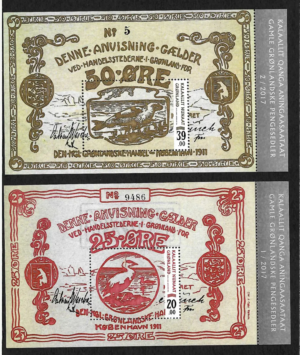 Grönland 2017: alte Geldscheine, Robbe, postfrisch