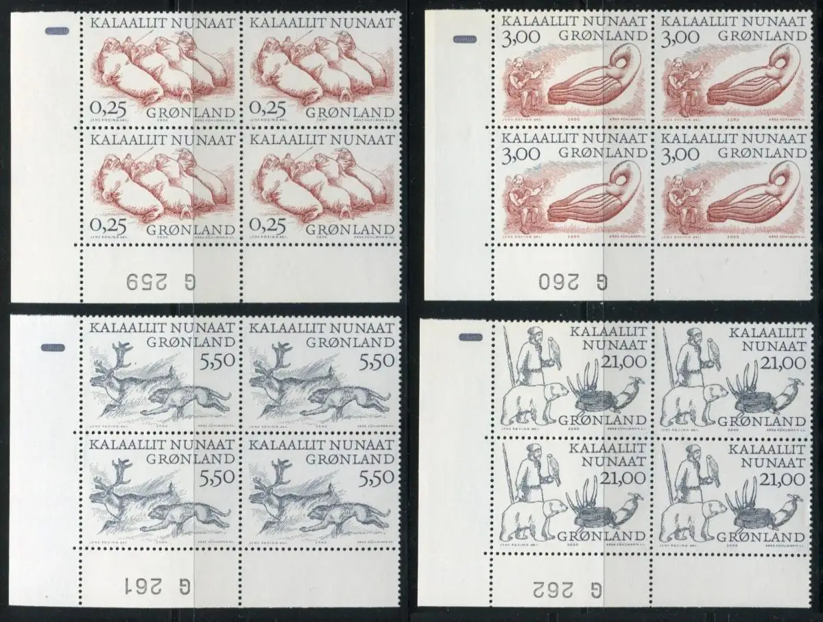 Vikings arciques: activité et reprise; quatre blocs d'angle avec impression de bord de l'arc G 249 / G 260 /G261 / g262 Numéro de catalogue: 347-348 Examen: original Référence produit: 00000000003528>Remarque: Cet article n'est disponible qu'une seule fois. Vous recevrez exactement l 'article représenté.