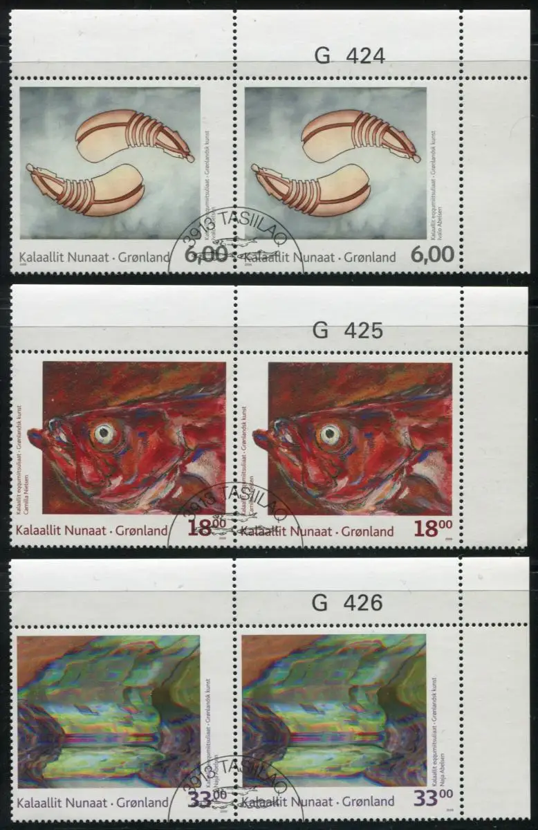 Groenland 537-539 Art: ER-Paar-Test en haut à droite avec impression de bord d'arc, ET-O