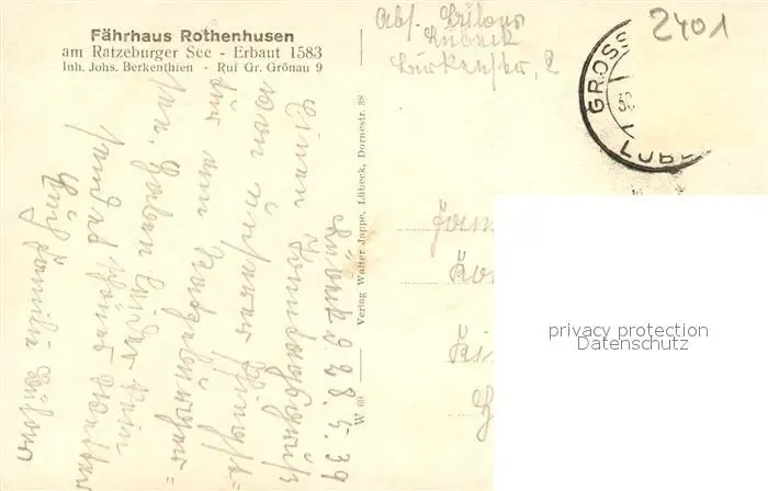Gross_Groenau Faehrhaus Rothenhusen am Ratzeburger See Gross Groenau postalisch gelaufen 1921-1965 Erhaltung siehe scans [WerneD78] WernPID7