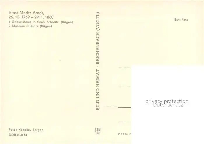 Gross_Schoritz Ernst Moritz Arndt Gedenkstaetten Geburtshaus Museum in Garz Gross Schoritz postalisch nicht gelaufen nach 1965 Erhaltung siehe scans [WerneD78] WernPID7