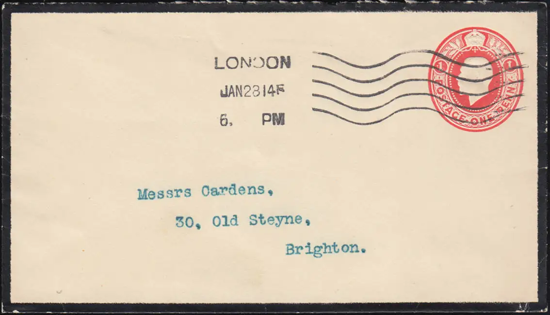 Royaume-Uni Vol privé PU 21 Lettre de deuil LONDON 28.1.1914 à Brighton
