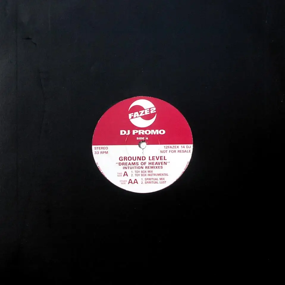 12" Maxi Ground Level - Dreams Of Heaven, Intuition RMXes, Promo, Couverture neutre, État plaque M- Hülle M; Fabriqué dans United Kingdom 1992 Faze 2 12 FAZEX 14 DJ, Tracks [Toy Box Mix] 7:11, [Roy Box Instr.] 07:07, _Spiritual Mix ] 6:30,[Spirital Lust] 6h14