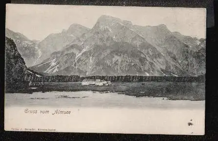 Gruss vom Almsee - Rückseite mit Text.Verlag J. Merzeder. Kremsmünster .(Österreich)