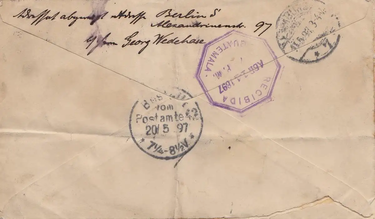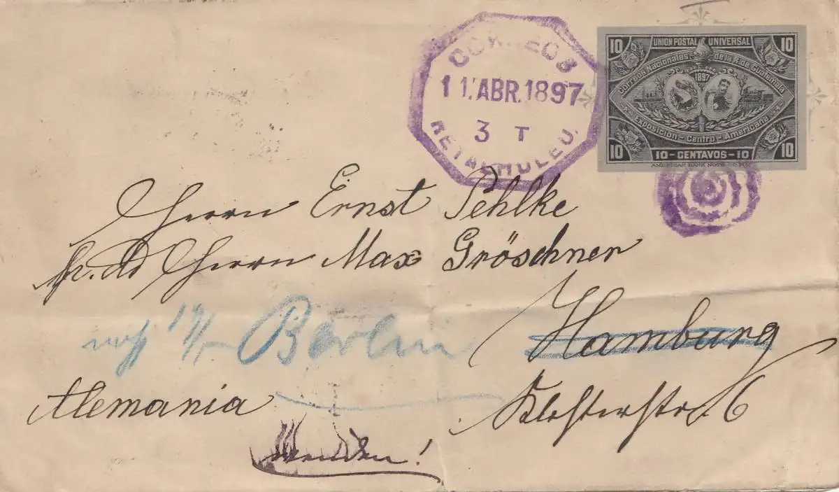 Guatemala: 1897: Retalhuleu to Hambourg, forwarded to Berlin