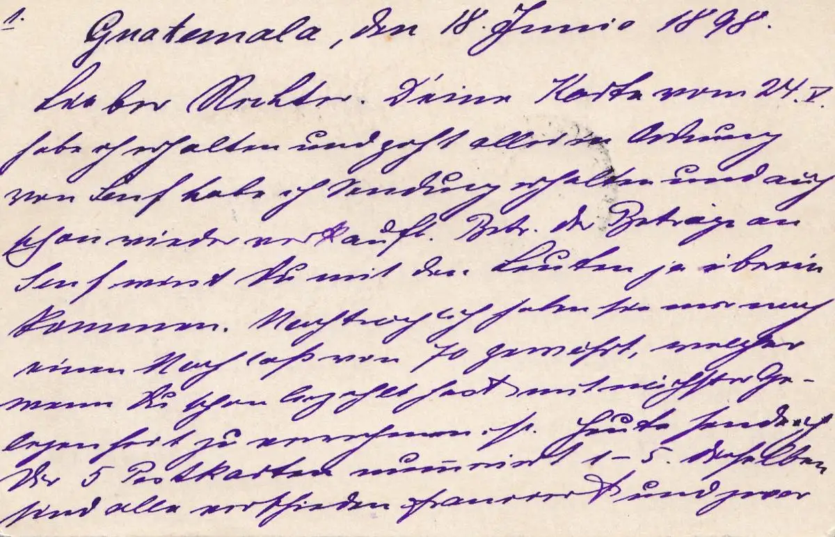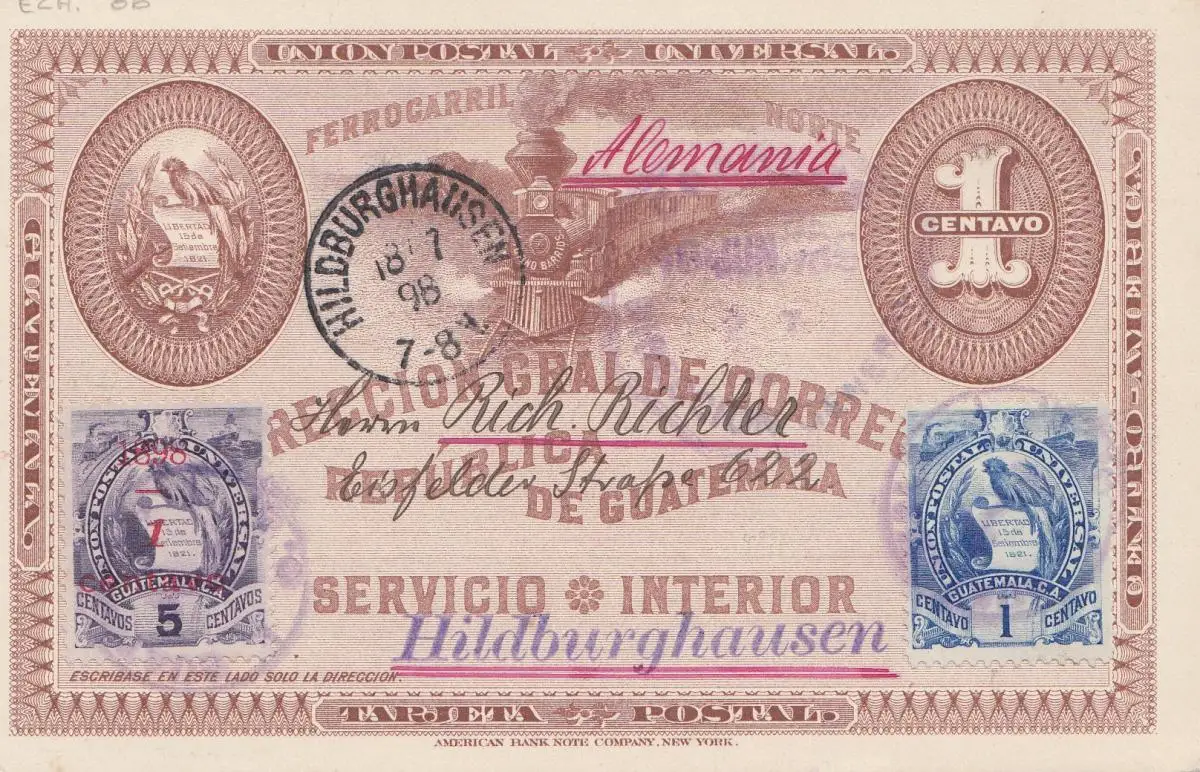 Guatemala: 1898: post card Servicio interior to Hildburghausen