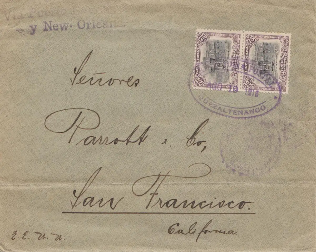 Guatemala: 1918: letter to San Francisco via la Nouvelle-Orléans